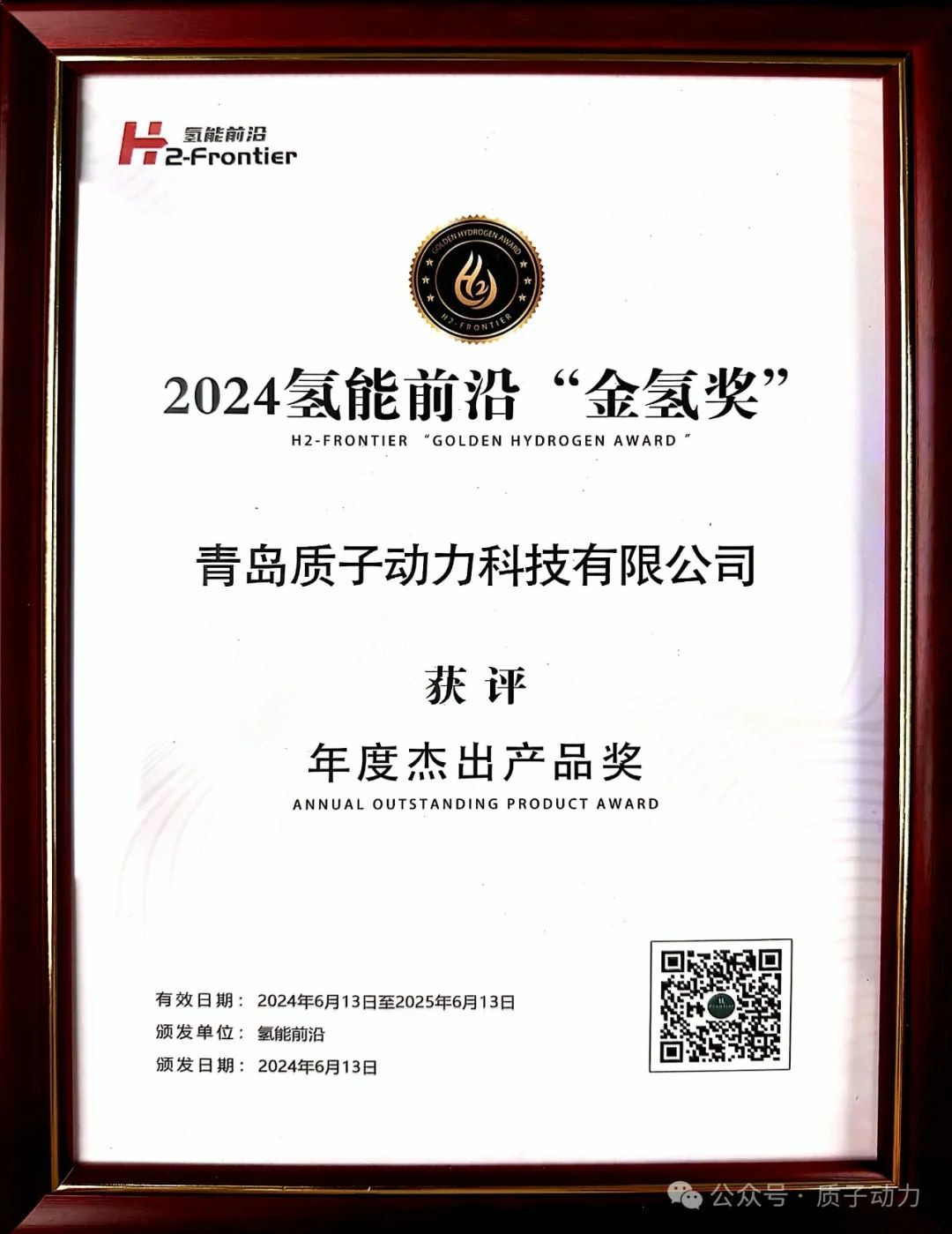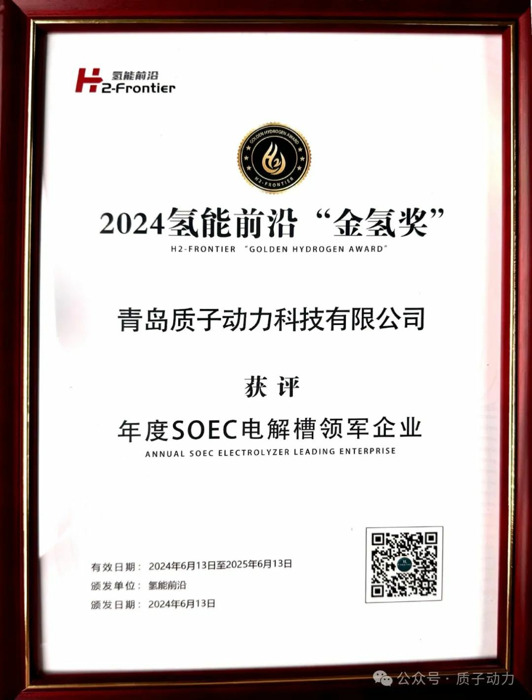 2024大會組委會專家團隊通過聚焦技術(shù)創(chuàng)新、產(chǎn)品性能、市場影響和行業(yè)領(lǐng)導力等方面綜合評定,在2024第二屆國際電解槽技術(shù)創(chuàng)新大會上為質(zhì)子動力頒發(fā)氫能前沿“金氫獎”,年度SOEC電解槽領(lǐng)軍企業(yè)“、"年度杰出產(chǎn)品獎”。